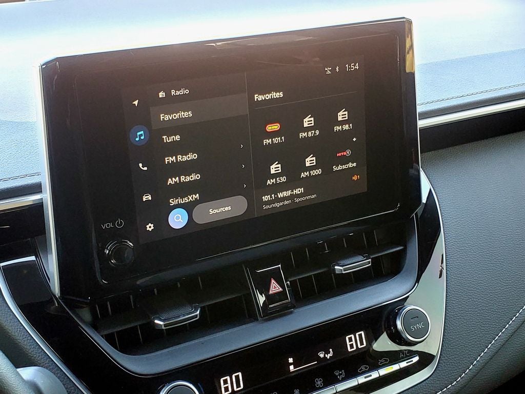 The Toyota Corolla Hatchback warns of approaching vehicles with Cross-Traffic Alert. See what's behind you with the back up camera on this small car. It keeps you comfortable with Auto Climate. The leather seats in this Toyota Corolla Hatchback are a must for buyers looking for comfort, durability, and style. It's blind spot monitor enhances safety. Bluetooth® technology is built into the vehicle, keeping your hands on the steering wheel and your focus on the road. Start the vehicle from inside with remote start. This vehicle is a certified CARFAX 1-owner. This vehicle has a clean CARFAX vehicle history report. This vehicle has a 4 Cyl, 2.0L high output engine. Set the temperature exactly where you are most comfortable in this unit. The fan speed and temperature will automatically adjust to maintain your preferred zone climate. Front wheel drive on this 2025 Toyota Corolla Hatchback gives you better traction and better fuel economy.